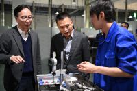 集团总裁陈文昌(中)在国际精密车间检查安全生产情况